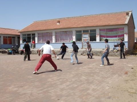 (吃飯前的一點時間也不浪費,來,踢場足球,來個友誼賽)