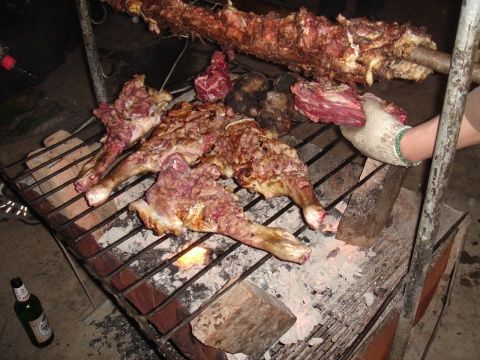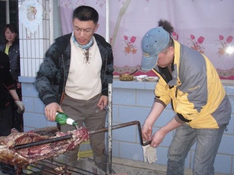 夜晚的風漸漸大起來,草原的特點就是早晚溫差極大,中午我們還穿著短袖汗流浹背的在馬上狂奔,傍晚就穿著厚厚的沖鋒衣在農家院里溜達著看李大嘴和面包烤全羊了。李大嘴也不愧為優秀的廚藝大師,不但菜燒得好,燒烤功夫也一流啊,他和面包不辭辛苦的為我們烤著全羊,讒嘴的我們實在忍不住那帶著孜然香味的焦黃鮮嫩的羊肉的誘惑,哄搶著用小刀迎著炭火的煎烤,一片一片的割著羊肉吃,等李大嘴和面包把整只羊烤好了,烤架上的羊也只剩下骨架了,呵呵。夜,也慢慢黑透了,風越來越大,本來準備好的篝火晚會,因為風大的原因取消了,娛樂活動也只好由戶外變成每個大炕上的牌局了,殺人、升級、斗地主…玩法多樣百出,歡笑聲中夾雜著:“喝,我們繼續喝,喝完這瓶再開一瓶”的酒鬼的聲音,我不太會打牌,自然就成了酒鬼中的一員了,呵呵。