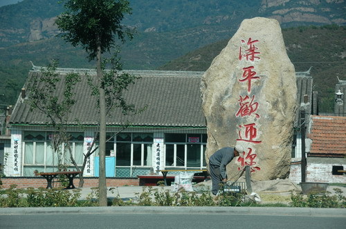 11:59 因為是高速,到灤平出口也就10分鐘,大家留意。出高速即可見到這塊巨石,右轉進縣城。此行,沒有按照老規矩走承德市區,從地圖上看,那道兒繞得不近。