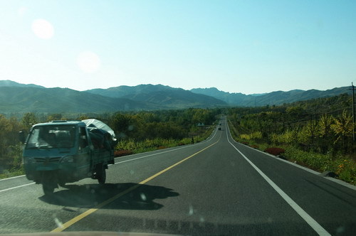 這路旁的紅黃色彩,也直觀顯示了與華北平原上的不同。