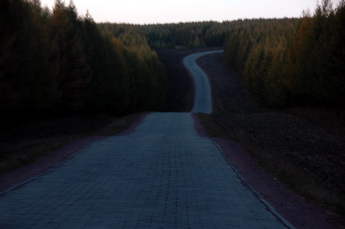 穿行森林公園的后半段,抹黑下山。低速拍攝,這圖片比實際環境明亮了許多,也虛化了許多。經過半小時,下到機械林場。    這里是大規模的集中住宿地,也是內蒙與河北的交界處。我們的住地是在界河的那邊,抹黑繼續出公園低速前行,交費,進入烏蘭木統草原。